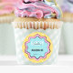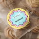 Trendy Bakery Round Label in a retro inspired design in pastel pink, blue and yellow., perfect to use for your catering business or bakery. Embrace the nostalgic groove with trendy chef product labels for your bakery, cafe or pastry business.