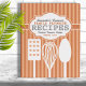 Fun retro/vintage look kitchen utensils and orange stripes on this personalized recipe binder - customize the text to make this awesome recipe mini-binder entirely unique! The perfect gift for a newlywed or mom, or grandmother!