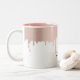 Trendy Rose Pink Gold Metallic Drips Monogram Two-Tone Coffee Mug