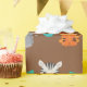A trendy safari themed wrapping paper featuring lions, giraffes, zebras, tigers, and elephants on a brown background. Great for a birthday party, order yours today!