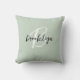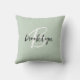 Trendy Sage Green Black White Script Monogram Throw Pillow