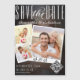 Modern, simple, and elegant Save the Date Magnetic Wedding Invitation cards with three photos, a vintage-style layout, and elegant script calligraphy. Your family and friends will adore it. And they can use the QR CODE to check your wedding website for info and details about the wedding.
