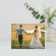 Modern Trendy Calligraphy Script Our Adventure Begins Wedding Bride and Groom Photo Thank You Postcard