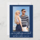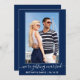 Modern Trendy Calligraphy Script Couple Photo We're Getting Married Save The Date Engagement Announcement Card - Navy Blue