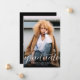 This elegant photo graduation announcement features our photo on the front along with your name, school and the word graduate in chic lettering. Change the wording on the back for your own announcement or as a party invitation.