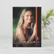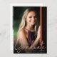 Trendy Script Overlay Two Photo Gradation Announcement and Grad Party with Rose Gold Script- Your graduate is featured on our graduation announcement, in full color, full bleed on the front of the invitation. Card also features, pretty handwritten script style typography. Our announcement is a both a Graduation Announcement and Grad Party invitation on the back of the card. There is also a prominent space for your grad's photo on the back of the card and plenty of space for you to personalize your information. So pretty and convenient! Card will be part of a collection. Also available with white overlay text.