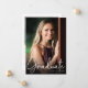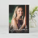Trendy Script Overlay Two Photo Gradation Announcement and Grad Party - Your graduate is featured on our graduation announcement, in full color, full bleed on the front of the invitation. Card also features, pretty handwritten script style typography. Our announcement is a both a Graduation Announcement and Grad Party invitation on the back of the card. There is also a prominent space for your grad's photo on the back of the card and plenty of space for you to personalize your information. So pretty and convenient! Card will be part of a collection.