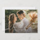 elegant white script modern minimal photo save the date wedding card. The text and colors can be edited.