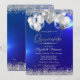 Trendy Silver Glitter Diamonds Balloons Navy Blue Invitation
