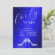 Trendy modern feminine birthday invitation for women. Fashionable and sophisticated design with shiny blue/white background with a thin white border encasing your event details and 2/two beautiful blue high heel stiletto shoe with a rhinestone diamond gem jewel decoration. Chic typography and elegant script. All text, font and font colour is fully customisable to meet your requirements. If you would like help in any way, please contact me through my store and i will be very happy to help you.