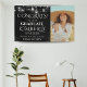 Congrats to our Graduate! Simply add name, place of study, class year and photo. Design features a black background that can be changed to any color, string lights and faux silver glitter.