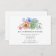 Vibrant watercolor wedding accommodations cards featuring pink and purple flowers, succulents and eucalyptus leaves.