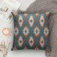Trendy Teal Blue Orange Dark Brown Gray Tribal Art Throw Pillow