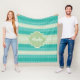 A trendy bright teal and lacy light green striped knit pattern fleece blanket. Personalize this stylish knitted design by adding your name and monogram. This is part of the Arcadia Knit Pattern With Nile Green Monogram Collection. Flat printed image, NOT made with knitted yarn or lace.