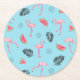 Trendy Tropical Flamingo & Watermelon Pattern Round Paper Coaster
