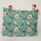 Trendy turquoise Wildflowers Boho pattern cute Fleece Blanket