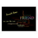 This card is covered in phrases that describe friendship. The phrases are in colorful type face and are surrounded by a black background to make the fonts stand out. The main word, Friend, is beveled slightly and is rainbow colored to draw attention to the singular word. The upper left corner has customized text to add a personal touch by using your friend's name. Inside greeting can be used as is or customized, and can be deleted for a handwritten note. Design ©Vann-Horn Creative Photo & Designs.