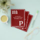 A simple clean minimalist design in garnet red with a text pairing of fonts in bold lower case monogram letter text templates and upper case font templates for the details that are easy for you to personalize. Just change the letters to your own right on the product page. All elements are fully customizable.