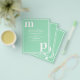 Simple minimalist typography design in a trendy cute text pairing of fonts in bold lower case for the monogram letter text templates and upper case font templates for the details that are easy for you to personalize in the popular wedding color of seafoam green. Just change the letters and details to your own right on the product page. All elements are fully customizable.
