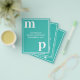 A simple clean minimalist design in turquoise blue with a text pairing of fonts in bold lower case monogram letter text templates and upper case font templates for the details that are easy for you to personalize. Just change the letters to your own right on the product page. All elements are fully customizable.