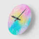 Trendy unicorn rainbow glitter holographic pattern round clock