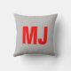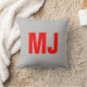 Trendy unique grey red bold monogram name initials throw pillow