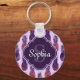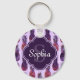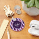 Artsy, stylish watercolor inspired tropical pineapple pattern in shades of pink and purple. A purple quatrefoil label frame is on top of the pattern and features a customizable name + initial letter monogram.