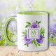Trendy Watercolor Purple & Lime Roses Monogram Mug