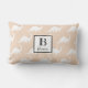 Trendy white brontosaurus silhouettes print pillow featuring your personalized monogram letter and name in black.