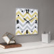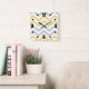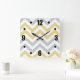 A stylish and modern square wall clock with a trendy chevron stripes pattern in yellow and gray.