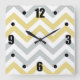 Trendy Yellow And Gray Chevron Pattern Square Wall Clock