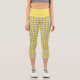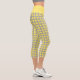 Trendy Yellow and Gray Heart Pattern Capri Leggings. Yellow hearts on a gray background.