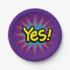 A trendy yes comic bubble design, this paper plate features "Yes" inside a blue and red speech bubble. Order yours today!