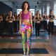 The dainty interlinked rosette design at the waist is truly unique. The poly-spandex makes for a nice fit and available in sizes 0-16. The printing is vibrant and eye-catching.