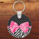 Trendy Zebra Print Polka Dots and Chic Pink Ribbon Keychain