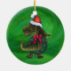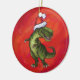 TRex Dino in Santa Hat on Red Ceramic Ornament