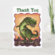 Cute Tyrannosaurus Rex Dino thank you card features a cute green T-rex dinosaur standing in a prehistoric volcano filled background with a yellow, orange texture sky behind digitally painting by Traci Van Wagoner. Inside is a customizable message that reads, You helped make my party a tail-wagging good time! This unique Tyrannosaurus Rex thank you card is a perfect way to say thank to all your friends who came to your dinosaur themed party. Visit Party Central in our Store and find all kinds of fun TRex Dino themed party gifts, stickers, t-shirts, invitations, rsvp cards and more! Have a tail-wagging good time!