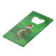 TRex in Santa Hat on Green Credit Card Bottle Opener