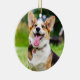 Ornament of a Tri Color Pembroke Welsh Corgi Puppy Dog sitting on the grass
