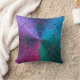 Tri-Colored Damask Metallic Lace Pillow. Colorful damask pattern lace in shades of blue, green, purple and pink over a shiny background in matching shades. Elegant, modern and distinctive.