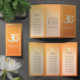 Yoga Studio Meditation Instructor / Life Coach / Healer / Reiki Master / Massage Therapy Tri-Fold Brochures Template - Modern Yoga Meditation Pose / Tree Pose (Vrksansana) and Faux Gold Foil OM Symbol on Orange Gradient Background.