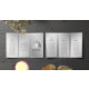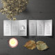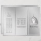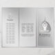 Yoga Studio Meditation Instructor / Life Coach / Healer / Reiki Master / Massage Therapy Tri-Fold Brochures Template - Modern Elegant Black White and Silver Gray Bodhi Leaf and Yogi in Easy Seat pose / YOGA Easy Pose / Sukhasana Pose on Silver Floral Background.