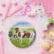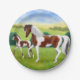 Original fine art design of a mother tri paint horse and her foal by equine artist Carolyn McFann of Two Purring Cats Studio printed on quality paper plates, great for equestrian parties, for horse+loving girls birthday party, or any occasion!