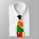 This necktie has a Bauhaus design of a collage of triangles in red, yellow, orange, blue, and green.