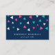 These fun, modern business cards feature a triangle confetti design in pink, white, and aqua. Background color is navy blue, but can be customized. Simple, stylish, colorful - perfect!