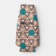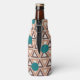 This bottle cooler has a geometric design of repeating brown and tan triangles with turquoise circles on top on a field of off-white. Want the same design in different colors? Message me.