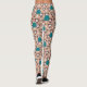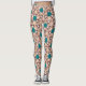 This leggings has a geometric design of repeating brown and tan triangles with turquoise circles on top on a field of off-white. Want the same design in different colors? Message me.