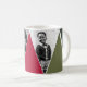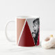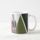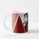 Mug with triangles in red and green and place for two photos to personalize it and make it a special gift.