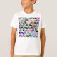 An attractive colorful patchwork design made up of triangles with different patterns and textures.
