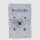 This golf towel is white with a painted look with a black triangular spider web with black widow spiders that have the red hourglass markings. Customize your text with the template.